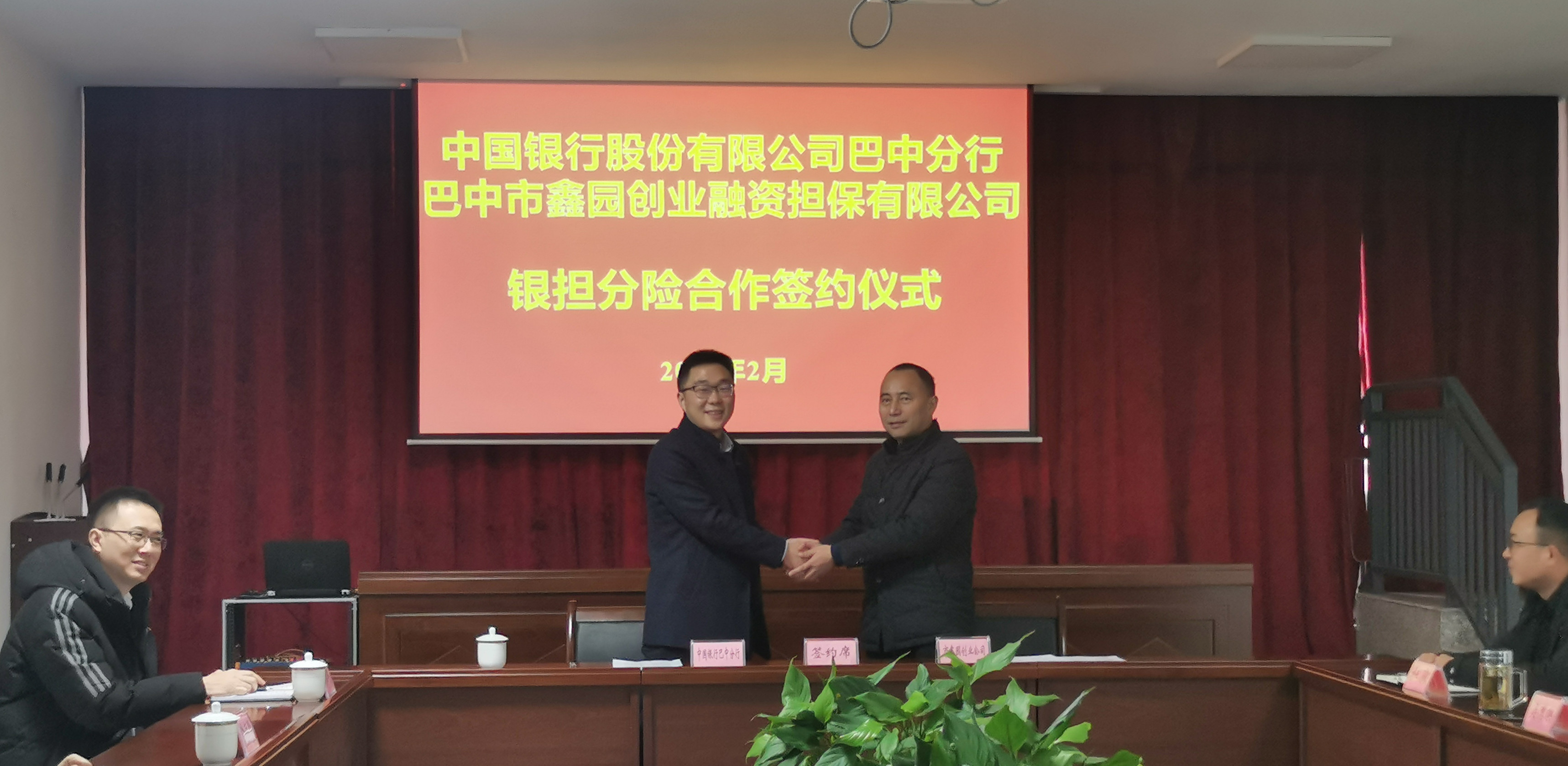 2月3日,中國銀行股份有限公司巴中分行與市鑫園創(chuàng)業(yè)融資擔(dān)保有限公司舉行銀擔(dān)分險(xiǎn)合作簽約儀式。中國銀行巴中分行行長韓存幫與市鑫園創(chuàng)業(yè)融資擔(dān)保有限公司董事長吳德映出席簽約儀式,并現(xiàn)場簽訂銀擔(dān)分險(xiǎn)合作協(xié)議。